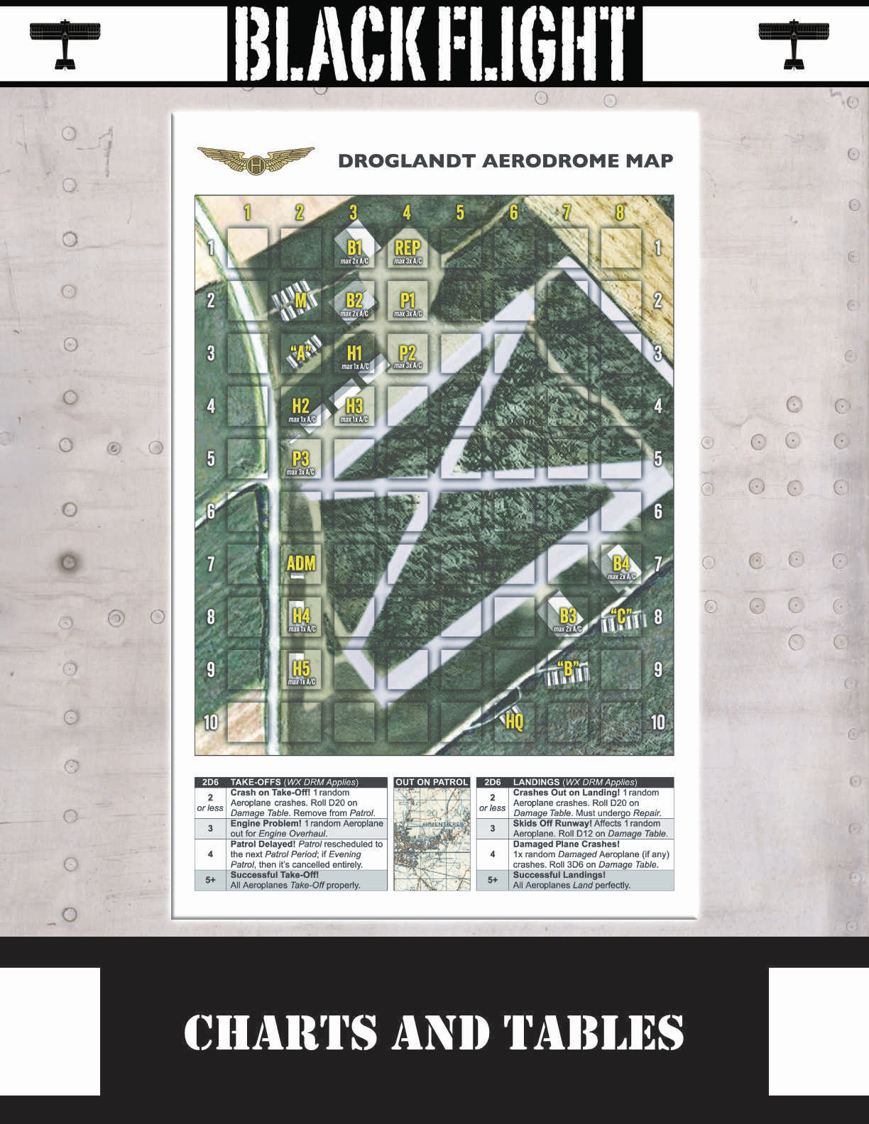 Black Flight is a solitaire air war game in a narrative style about the Royal Naval Air Service (RNAS) and No. 10 (Naval) Squadron. Set in 1917, it is the first book of the Great War Series of games. It features a mid-sized table-top footprint and easy-to-learn rules. Gameplay involves dice, cards, and tables. You command a full squadron in a baptism of fire in the skies over the Western Front.