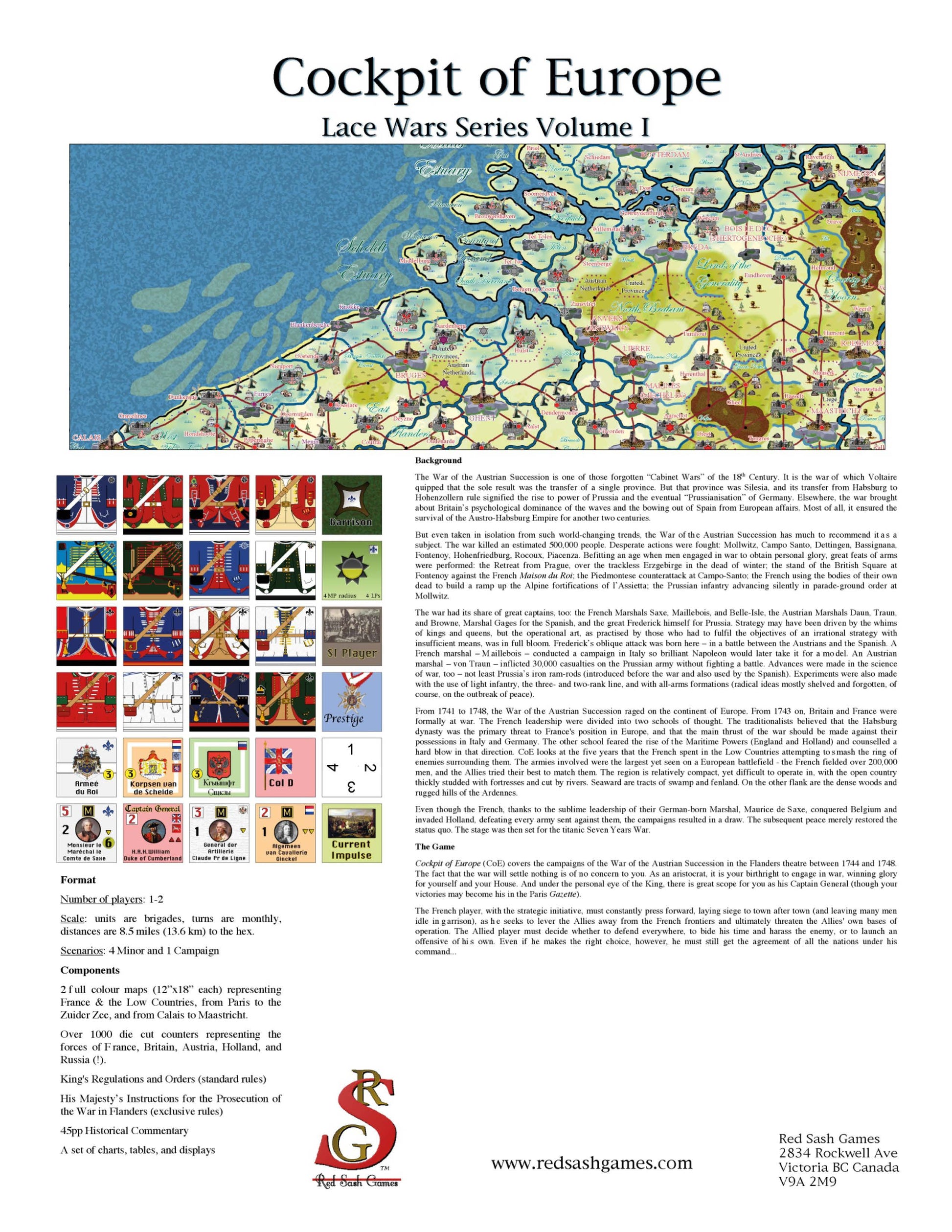 Cockpit of Europe covers the campaigns of the War of Austrian Succession in the Flanders theater between 1744 and 1748. The fact that the war will settle nothing is of no concern to you. As an aristocrat, it is your birthright to engage in war, winning glory for yourself and your House. And under the personal eye of the King, there is great scope for you as his Captain General (thought your victories may become his in the Paris Gazette).