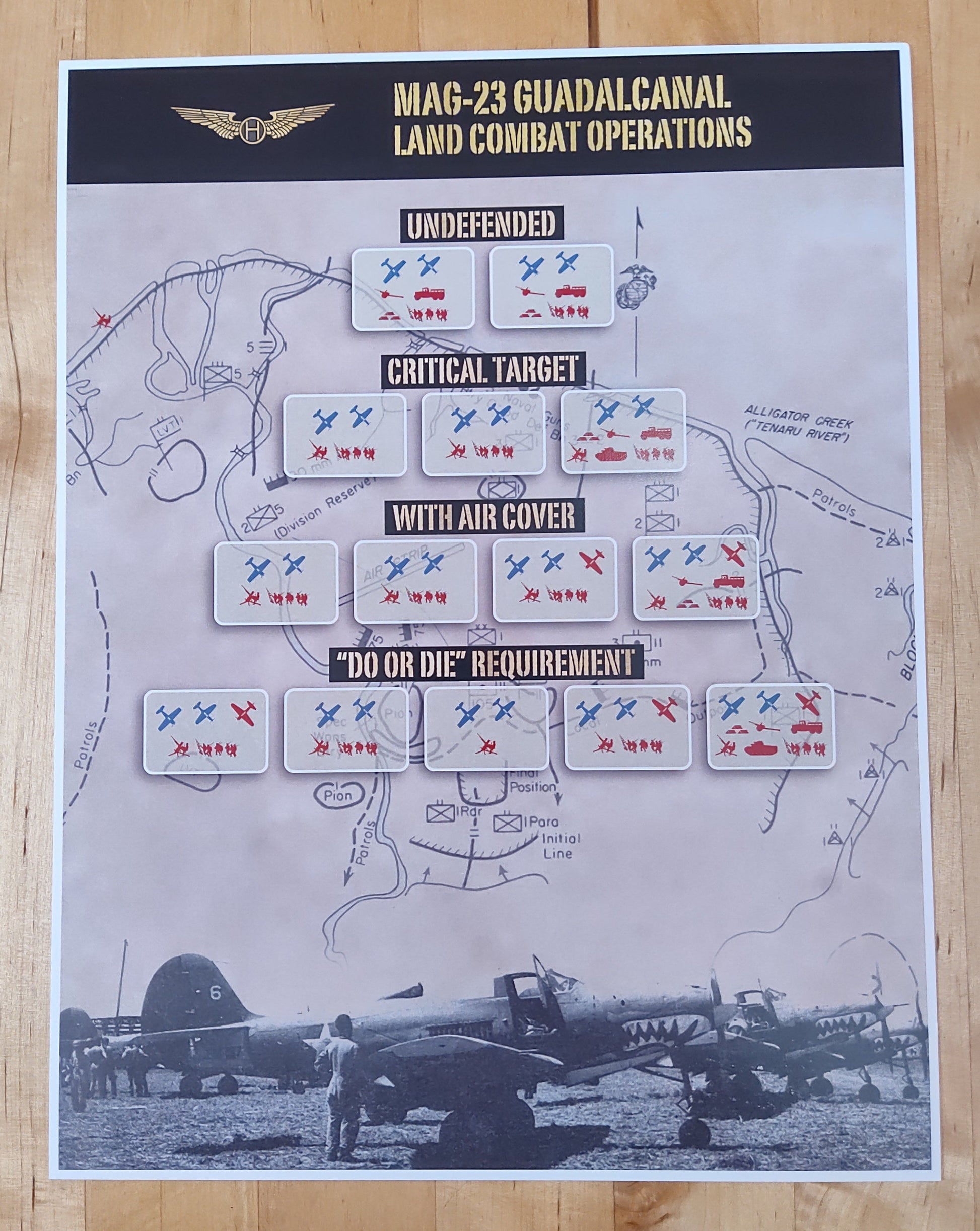 The action comes together in a narrative style in a logbook that you write as you play. You capture the stories and events of your deployment at Henderson Field, with stories of heroism and tragic losses as you face the committed, expert forces of the Japanese. Will your F4F Wildcats defeat Japan's G4M Betty bombers and its many aces in their A6M Zeroes? Will you stop the "Tokyo Express" at sea? Will you destroy enough of Japan’s surrounding land forces?