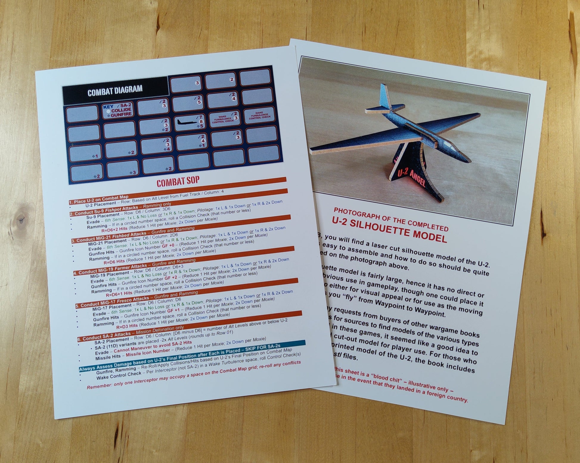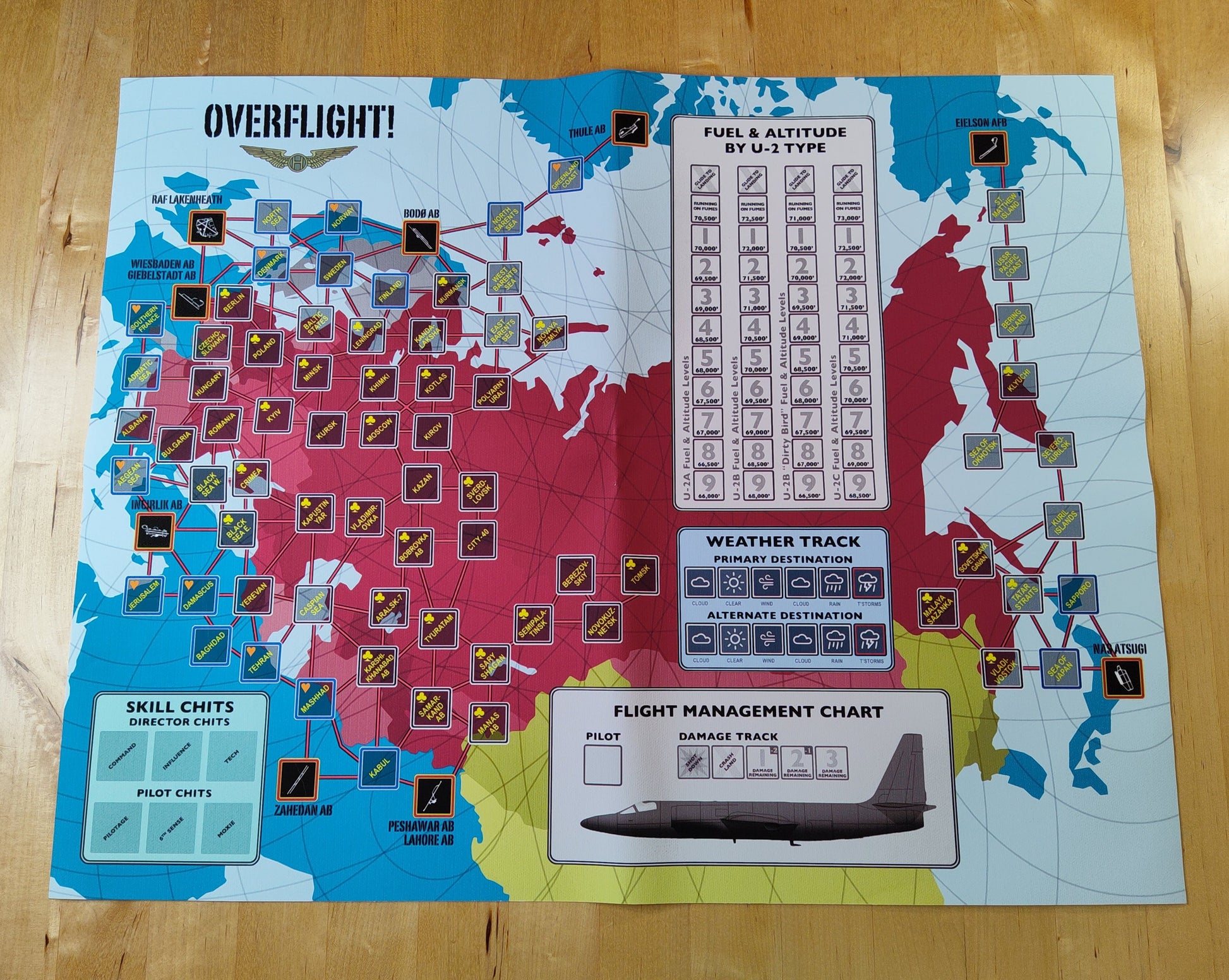 "Overflight!" is a solitaire reconnaissance game in a narrative style. As the Director of the CIA's U-2 program, Project AQUATONE, your pilots will fly deep into Soviet-controlled territory with the mission of taking photographs and gathering information about the latest developments in the Society Union's military arsenal. The President asks, "Are the Soviets winning the arms race?"