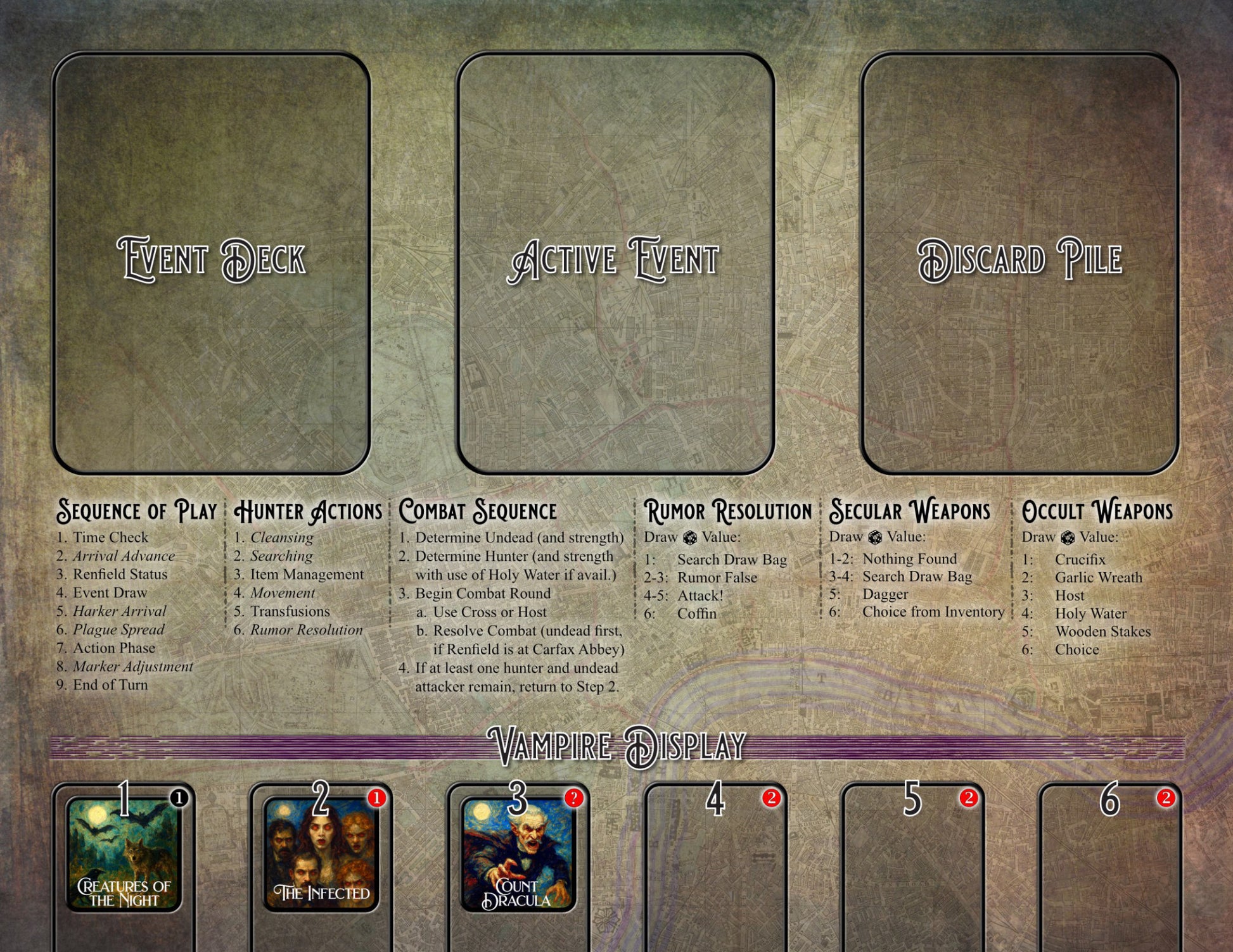 Plague of Dracula is a solitaire game of horror set in Victorian times. The game can be played in solitaire (single player) mode or up to five players with optional rules.
