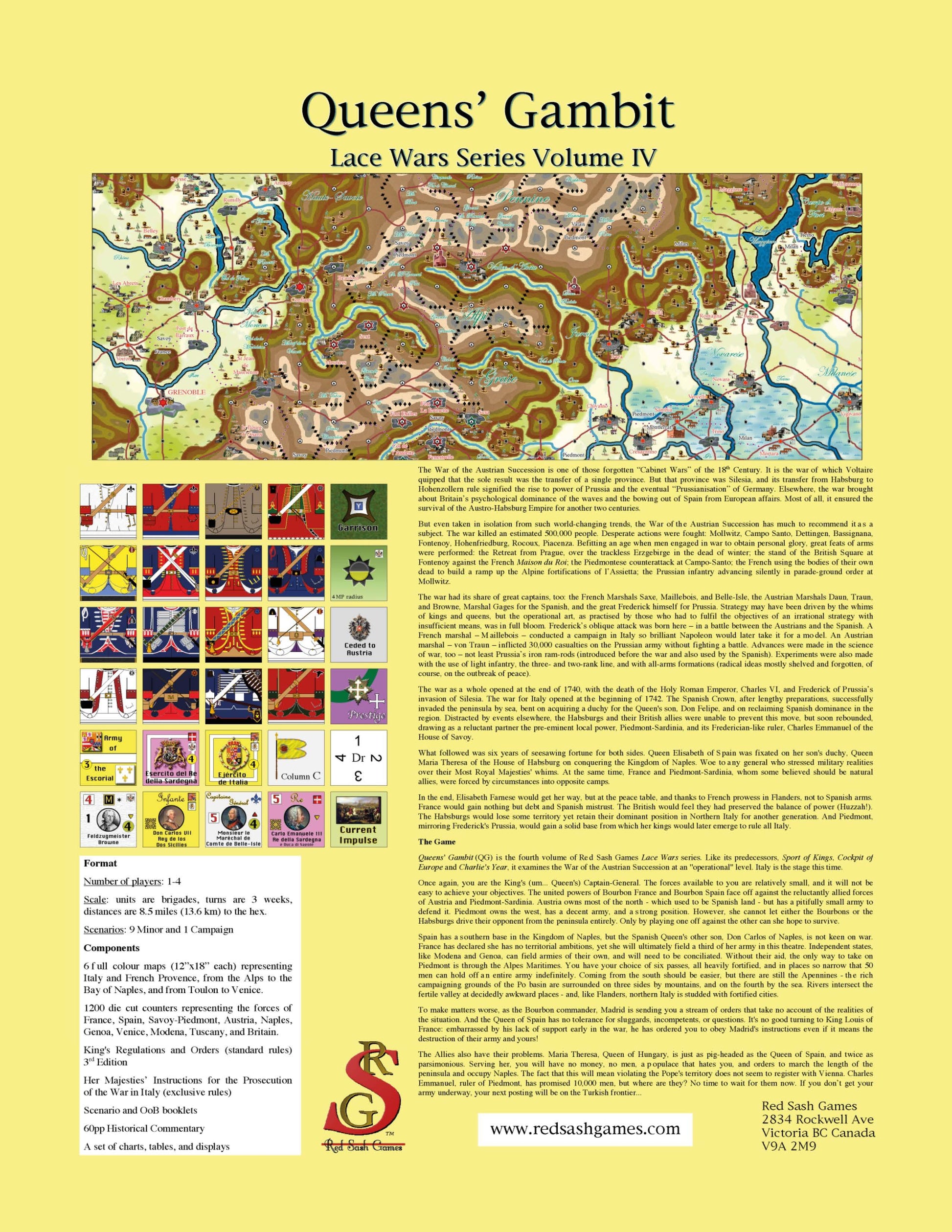 Queen's Gambit is a hardcore, tactical war game set in 18th century Italy. It is the fourth installment of the Lace Wars saga.
