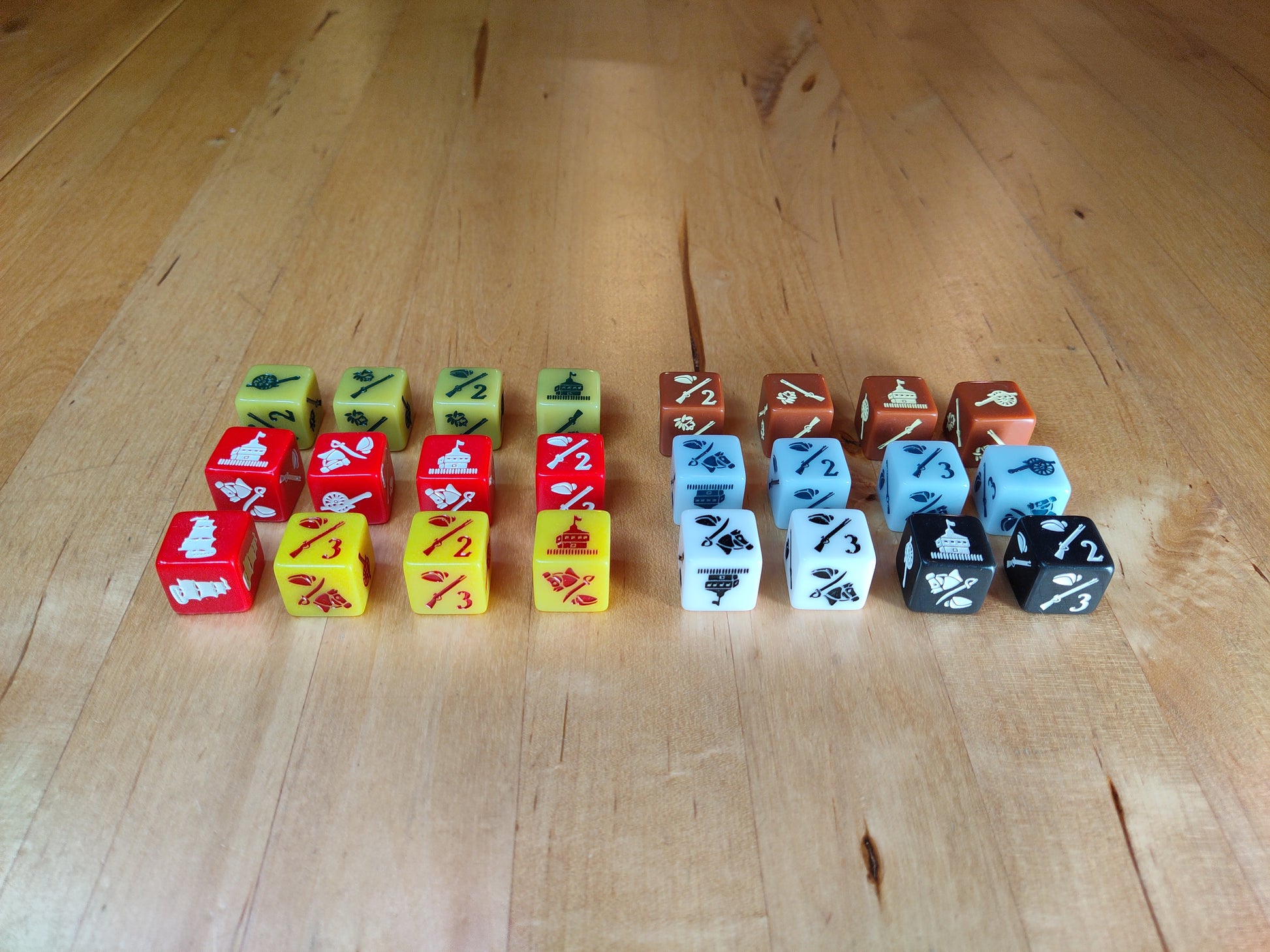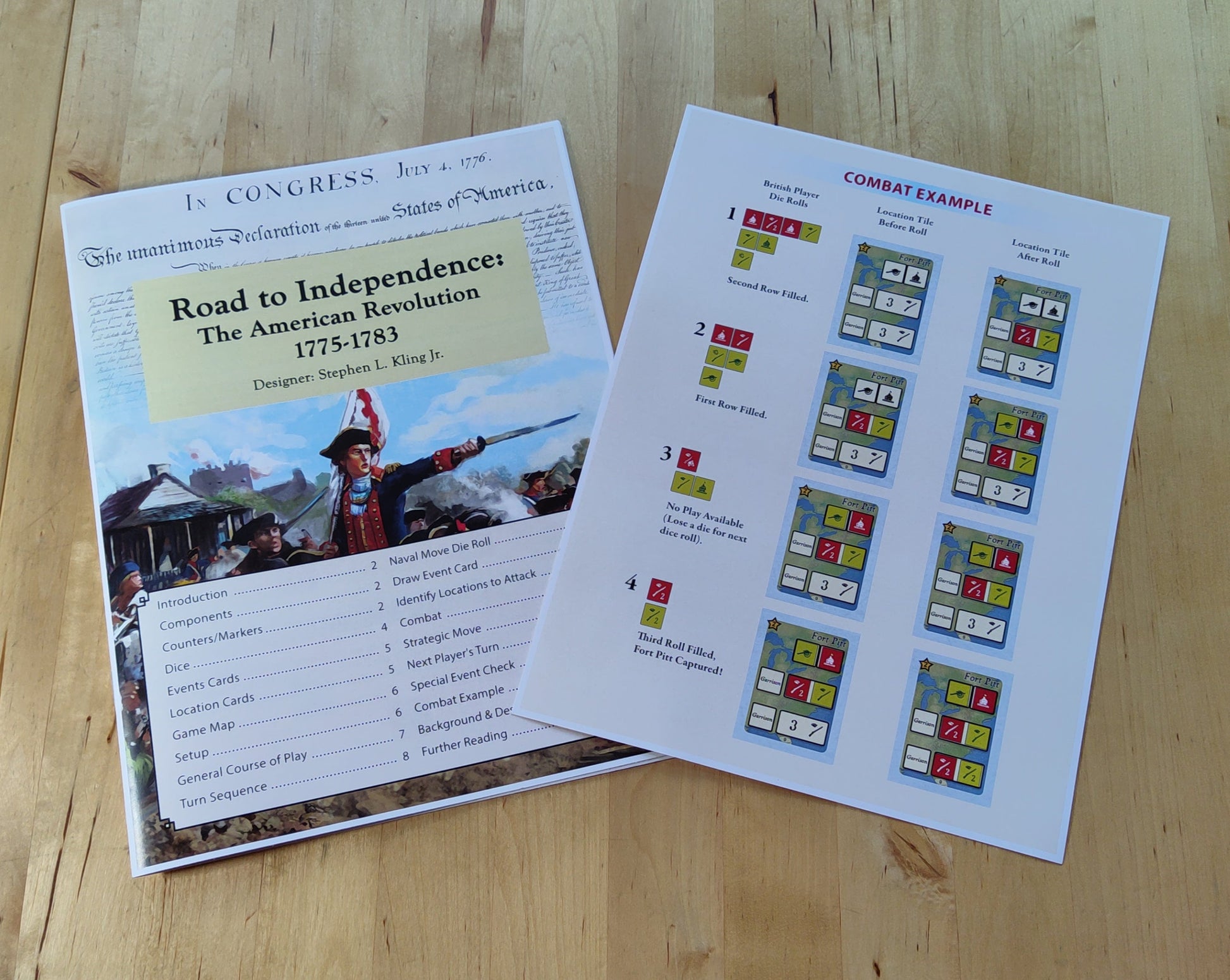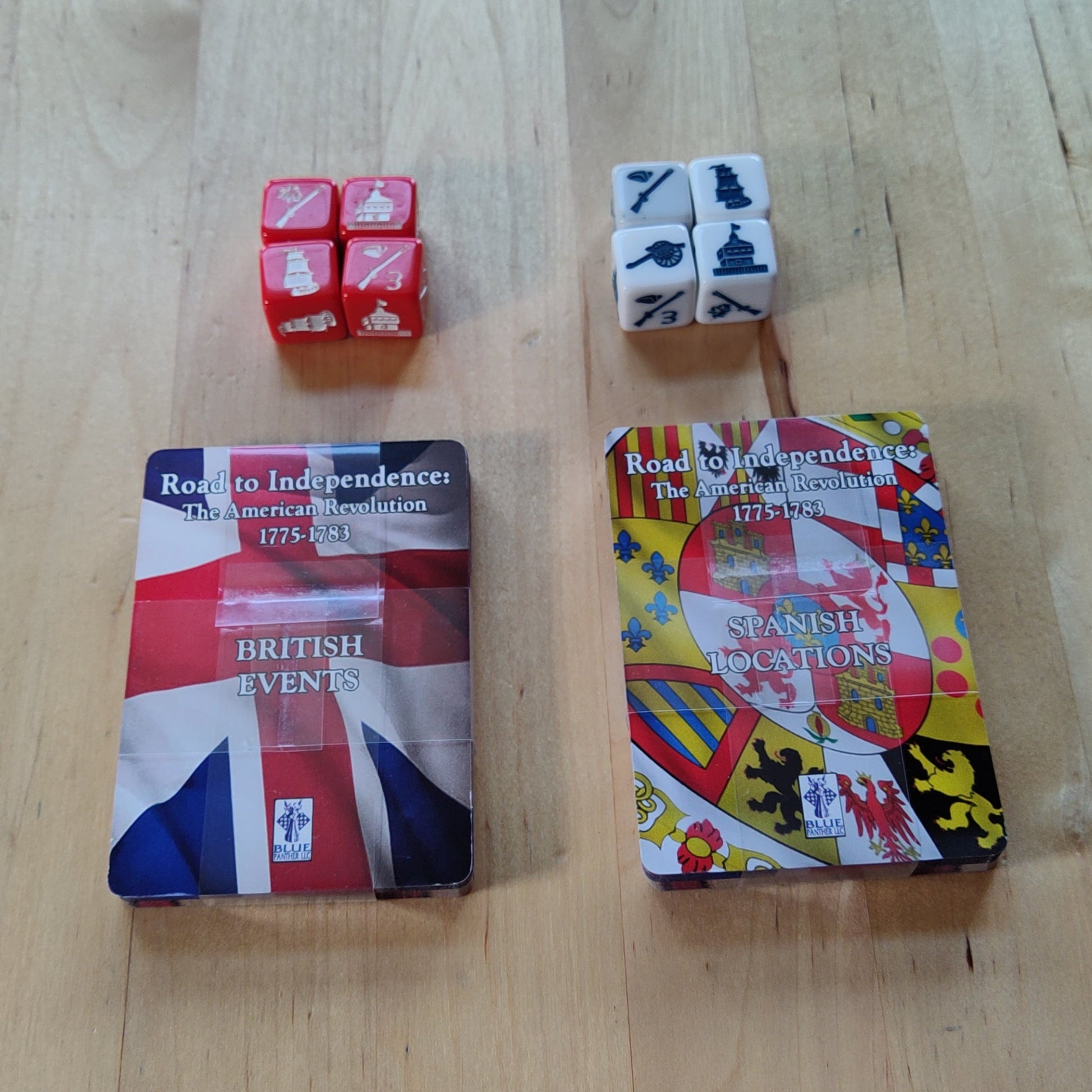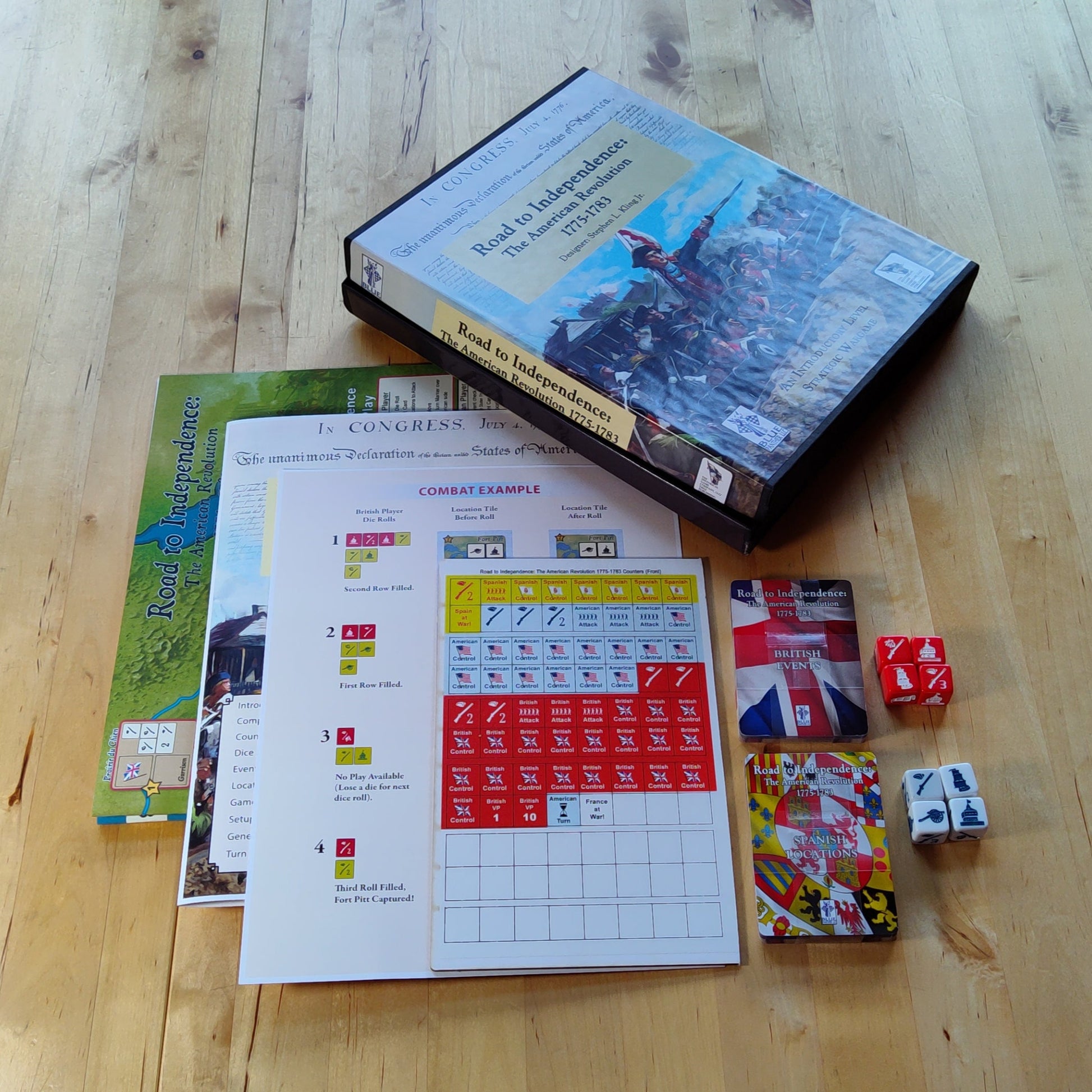 The game not only includes the Eastern seaboard, but also the conflict in the Wilderness territory. This "theater" is rarely covered in games on this conflict. Both players will fight for control of important locations using specially made dice that represent the various enemies and allies. These combatants include British men, American soldiers, Native American allies, militia units, and the French and Spanish allies.