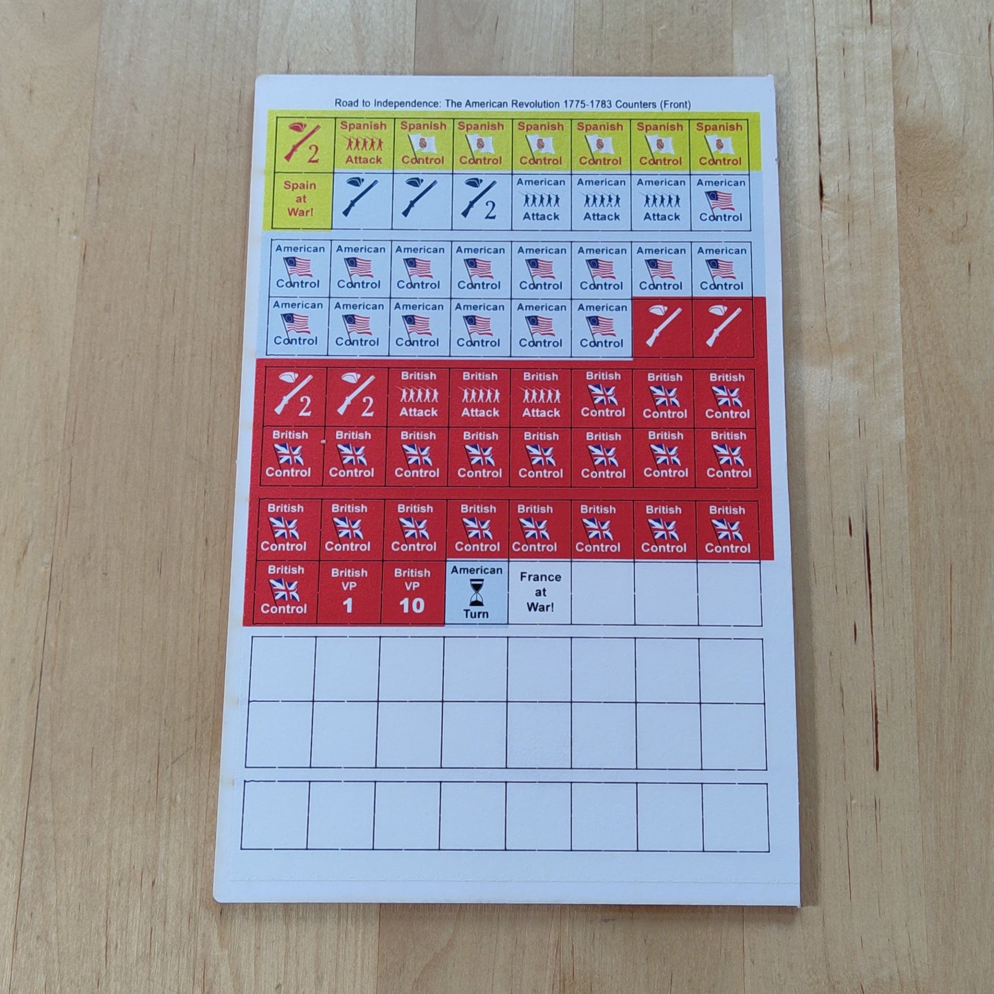 "Road to Independence: The American Revolution 1775-1783" is a two player, entry level strategic war game from The Historical Game Company. Will you fight for the American dream? Or will you serve the whims of the Royal Crown? Whatever you choose, the path to freedom rages on...