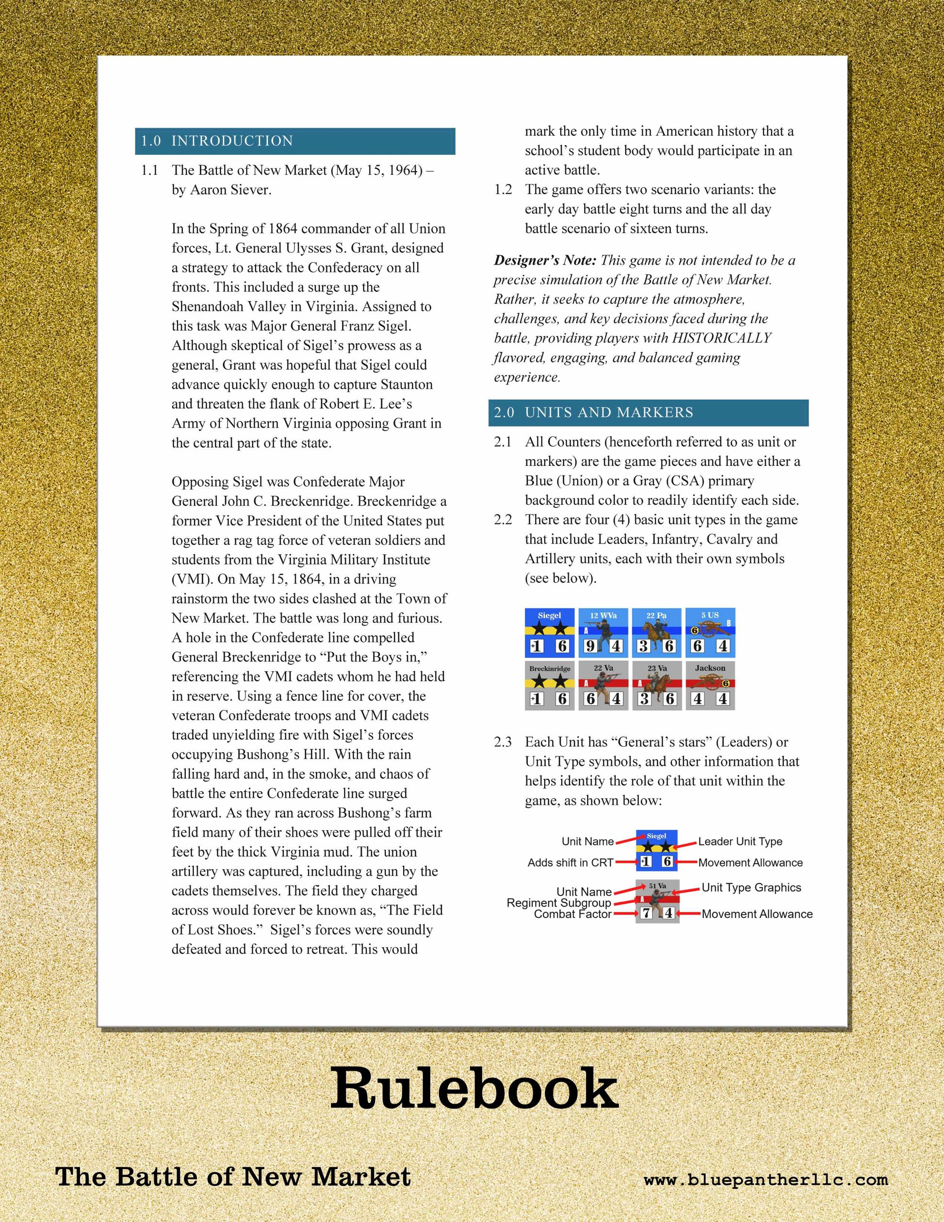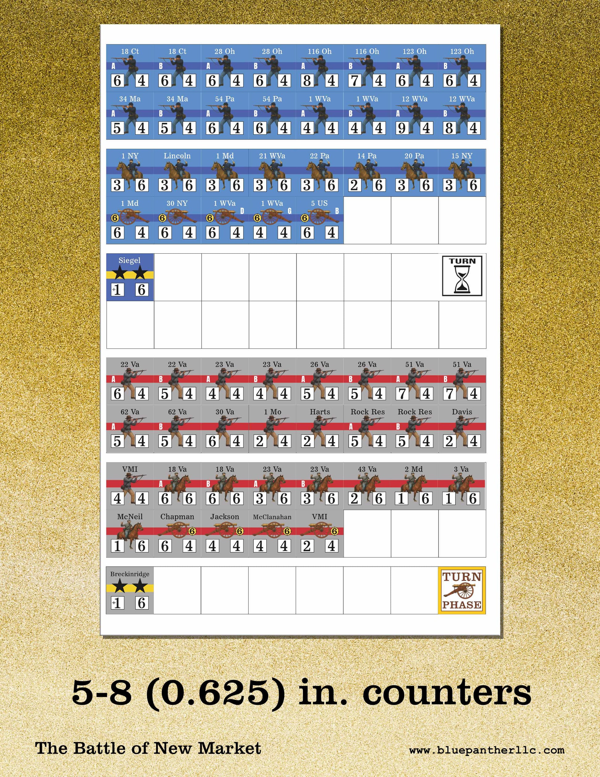 The Battle of New Market is a 1-2 player solitaire-system strategy game set during the American Civil War. The Union and Confederate armies battle for control of Shenandoah Valley. The fate of Virginia is in your hands.