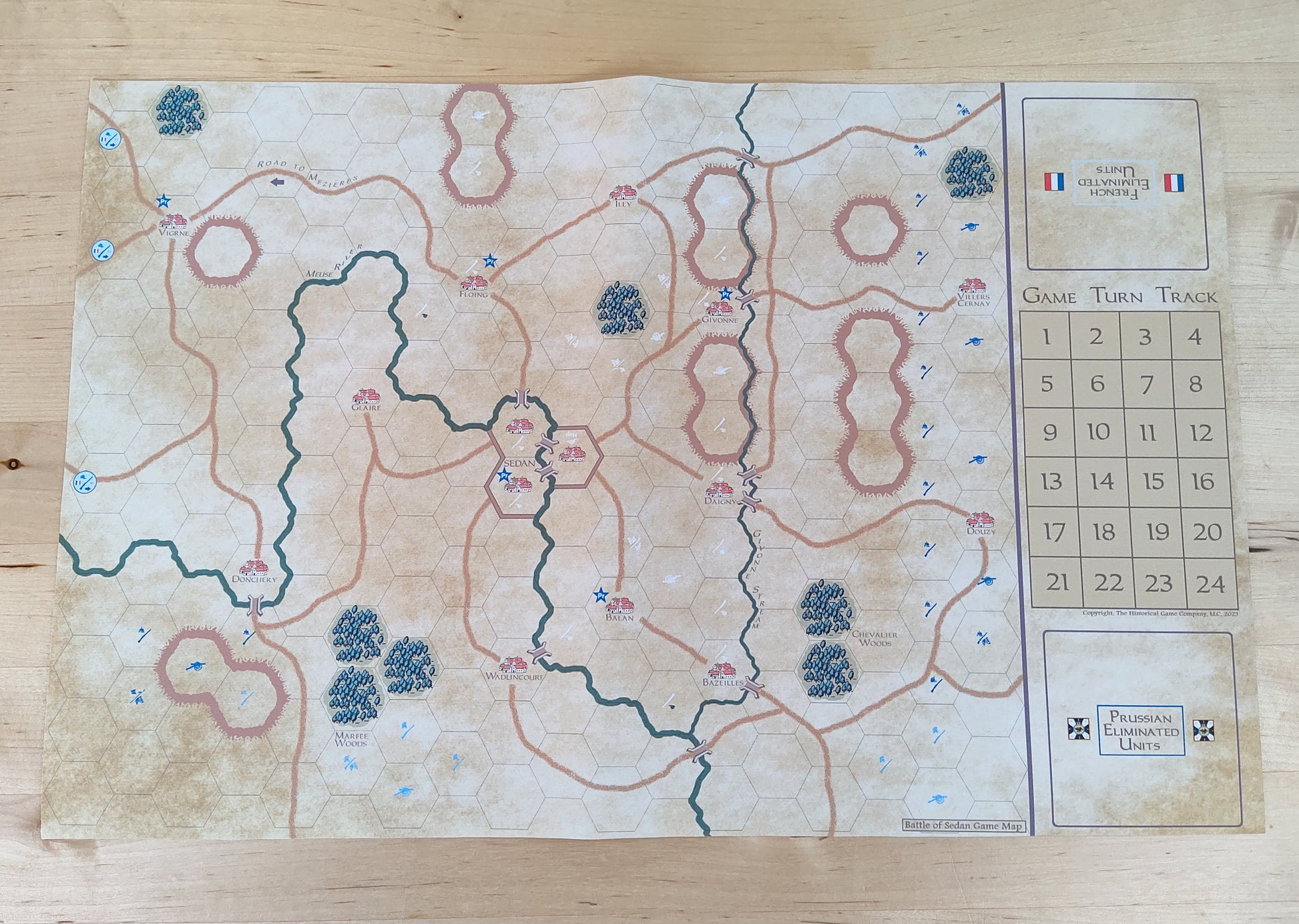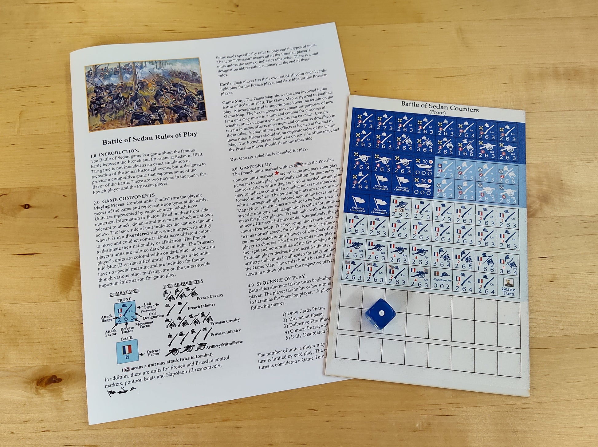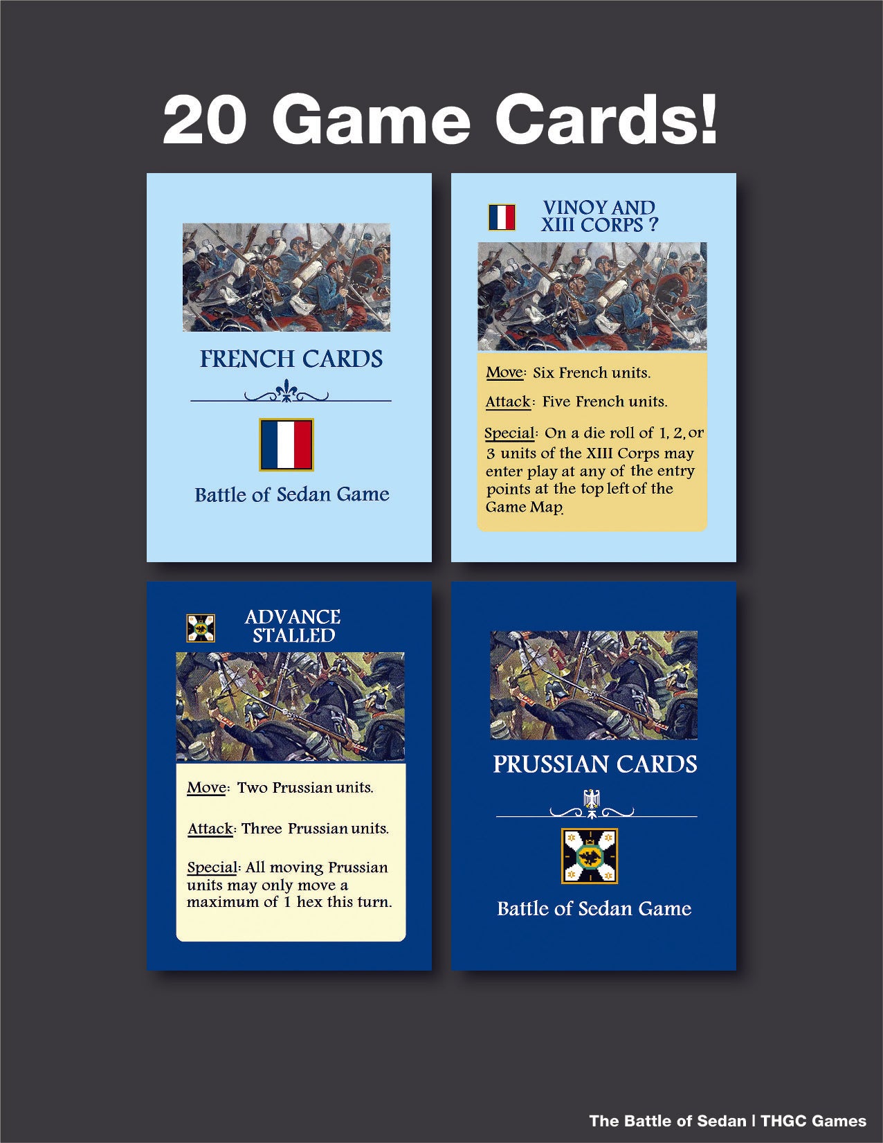 "The Battle of Sedan" is a low to moderate complexity tactical game of the French disaster at Sedan during the Franco-Prussian War. One player commands the combined Prussian-Bavarian forces while the other player commands the French army.
